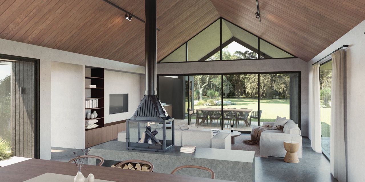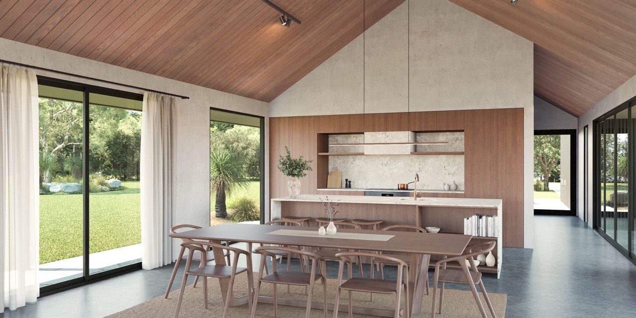 The design celebrates the art of slowing down. Expansive glazing captures the serene outlook across the water, inviting the changing seasons to become part of the home’s daily rhythm. Spaces are arranged to encourage rest - morning coffee by the dam, slow afternoons in the sun, evenings spent watching the light fade across the hills.